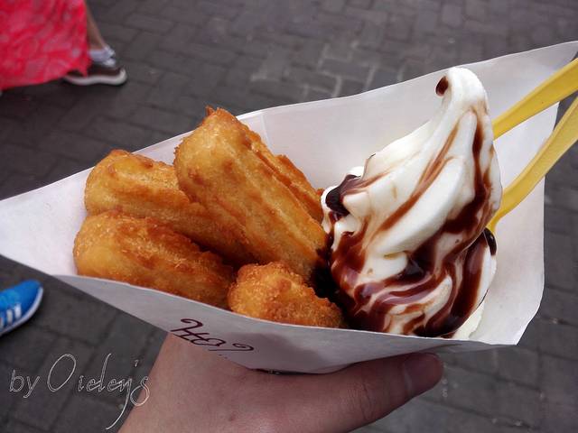 这种叫吉事果的东西...配着冰淇淋~浇上巧克力酱~味道还是蛮不错的~
