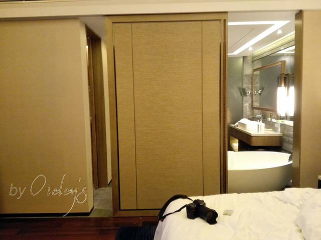 床和卫浴这边只有这样一个推拉门隔断~而且不是全部挡住的~就像图上这样只能挡一个门这么宽~供大家参考啦~