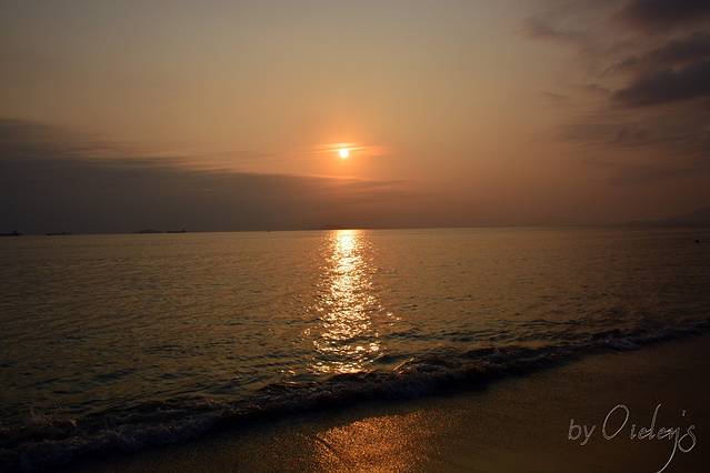 三亚湾的沙滩不细,水也不算很干净,毕竟是开发过很久的地方了,但这里的日落绝对是数一数二的~