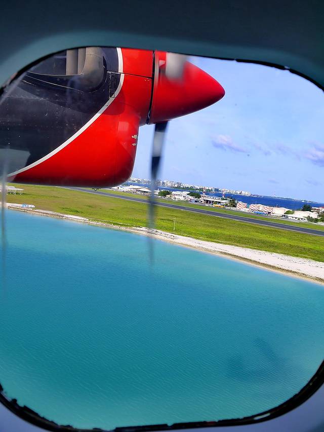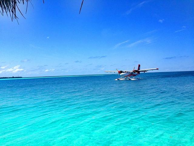 ②其次交通方式我选择水飞。之所以选择水飞,就是因为岛屿离马累远,水自然也就越纯净,所以我愿意选择较远的,快艇无法到达的岛屿。