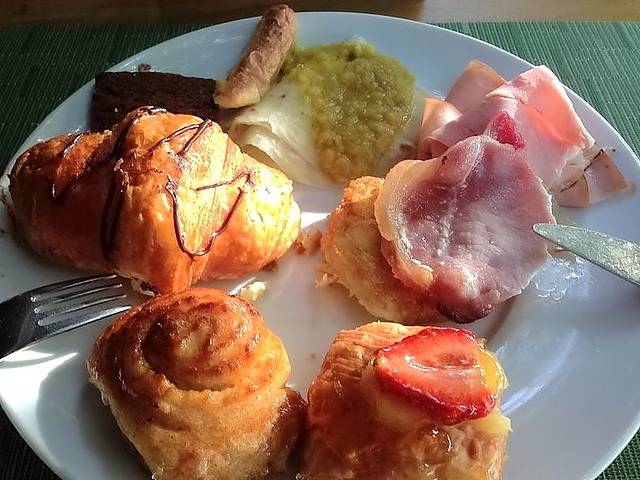 早餐自助以西式为主,由于中国人少,因此早饭一般很少有粥或是面食。基本都是面包,冷餐,奶酪火腿多一些。喝的基本是咖啡、牛奶。服务生会问你是否要冰咖啡,如果你需要,尽情的把酒水钱喝回来吧。