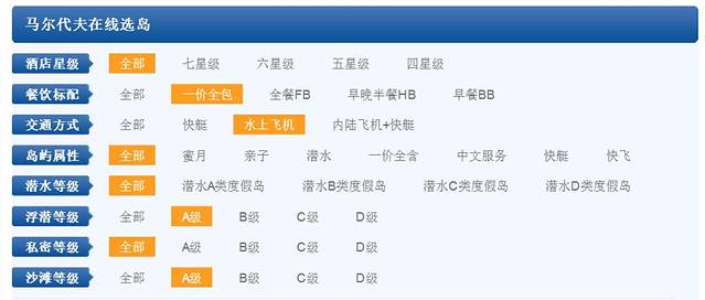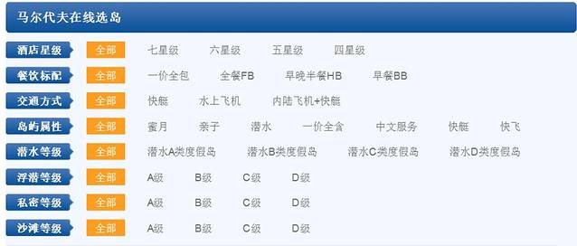 此时你会看到,会有不同选岛条件。马尔代夫选岛条件主要分为以下几类: