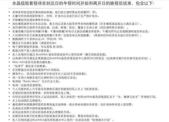 弊端:可选方式单一,不能按照自己的想法随心所欲。比如一价全包、4晚水屋或者4晚沙屋的条件不能同时满足。有可能旅行社只提供2沙2水的订单,这样就会很尴尬了。