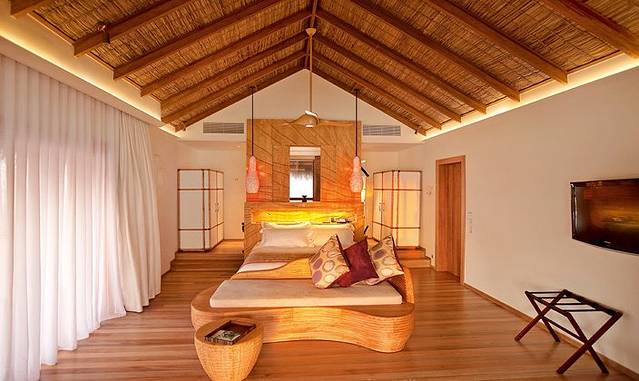魔富士岛开发较晚,设施很新,建于2010年,属于康斯丹旗下的一价全包的6星级入门岛屿,一岛一酒店,虽然算不上顶级奢华,但承载个舒适甜蜜的蜜月绰绰有余了。酒店里面的房间都是原木风格,细节处做得非常精细,就连梳妆台都是个小钢琴的样子。