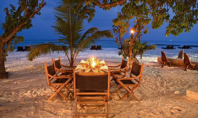 Manta是这个岛上的主餐厅,自助餐厅。每天都会有不同餐饮主题,比如:露天龙虾烧烤之宴、牛排大餐、印度咖喱风情等等,主题通常不定,但如果你来6天4晚的话,基本都会赶上2顿以上这种文化主题之宴。餐厅环境非常美好,坐在白沙滩上,一边享用着美食,一边眺望着一望无际的清澈的海水,真的是最美不过了。