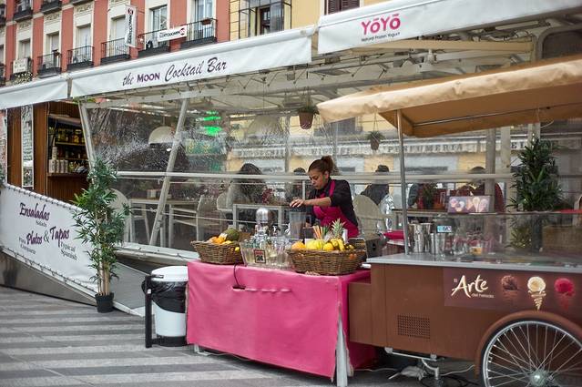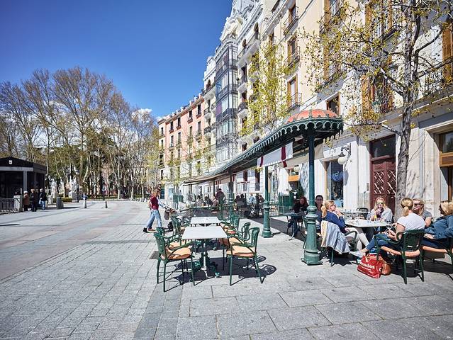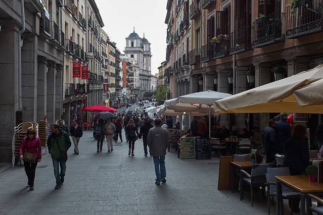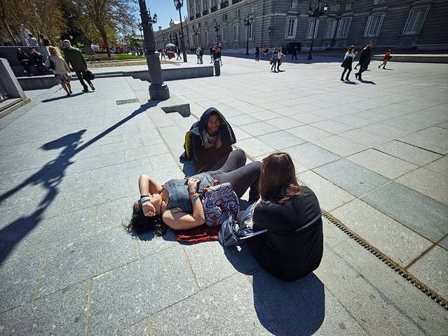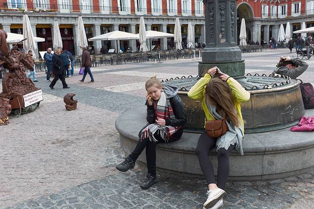 但是,马德里的攻略我根本没好好用,反正只有两天时间逛逛景点和博物馆,也就没时间了。于是,只得现搜哪里有卖的,然后,就找了过去,当然,最终只找到了新秀丽,但是,这一路,走走逛逛,也很开心。箱子没买到,天却晚了,正好路过一个小广场,大家都在吃吃喝喝,好吧,虽然不饿,也吃喝起来。