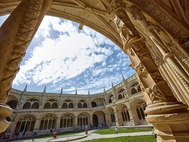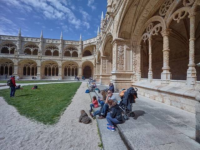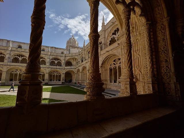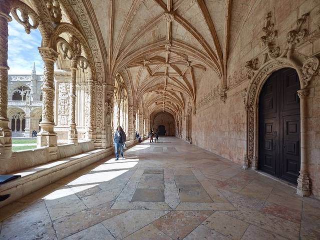 热罗尼莫斯修道院,和贝伦塔一样,是世界遗产,应该属于葡萄牙最具代表性的建筑了吧。修道院的雕花多而精致,有可能是因为用了那种质地较粗的石材,所以看上去疙疙瘩瘩的,但是却有着异常美丽的拱廊。