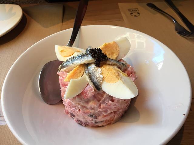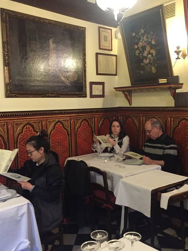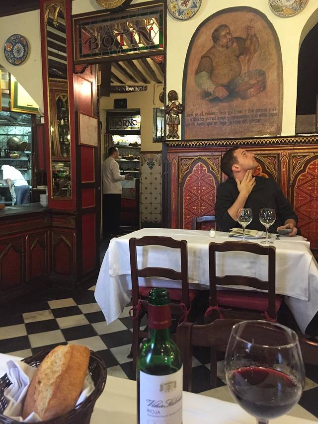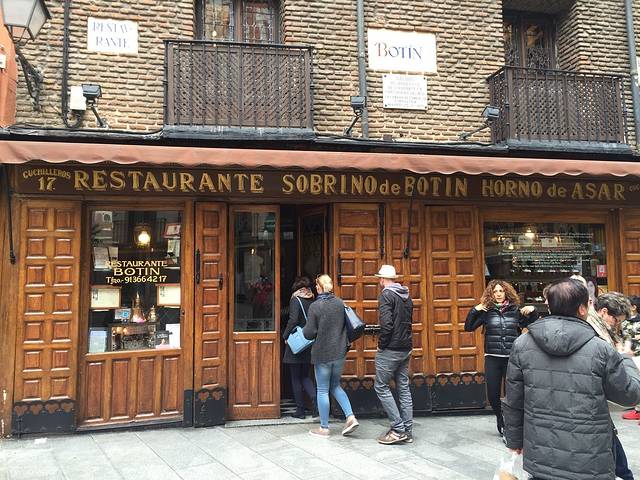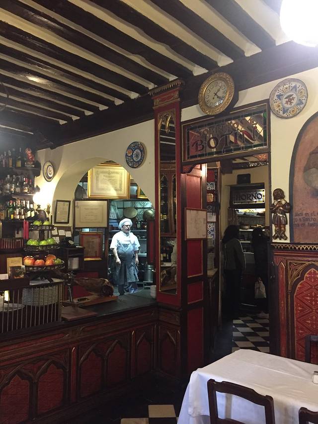 中午的Sobrino de Botín餐馆不需要预定,也不需要排队,这家马德里最古老的餐厅;米其林二星,还是名符其实的,虽然可能游客太多了,服务僵化,但是菜品还是可圈可点的,尤其是那个烤乳猪,真的是汁多肉嫩,当时就觉得自己的这个选择是多么的光荣正确伟大呀。