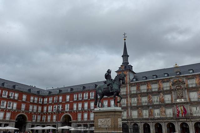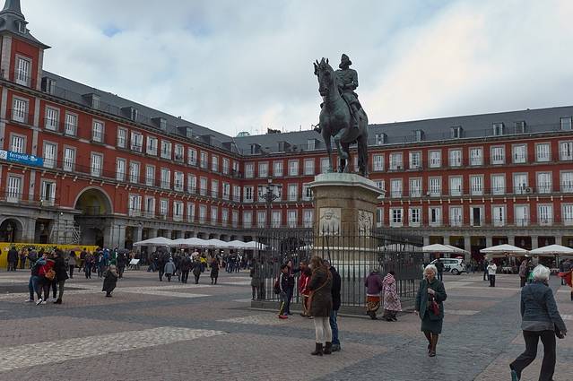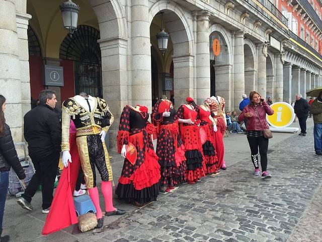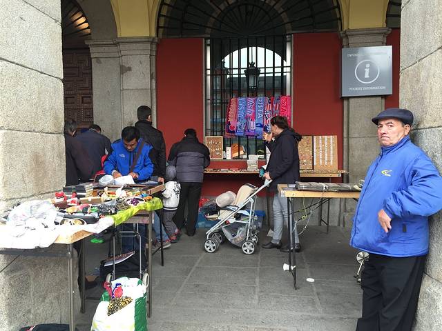 从住的地方走到跳蚤市场,大概2公里,一路上走走逛逛,发现了一个跟昨天完全不一样的马德里,我想,我是走进了真正的马德里的市民的生活区,充满了生活气息,既热闹又安静、既优雅又世俗、既热情又温柔,瞬间就爱上了这个城市。中途,还路过了一个广场,后来知道是马德里的市政广场,其实这里也有个小的周末旧货市场。