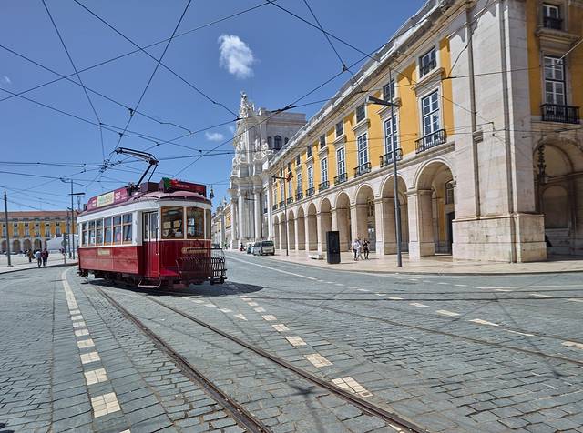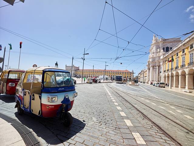 从vicci走了五分钟,就到了商业广场,天气很好,里斯本居然也有三蹦子,哈哈,不过真q