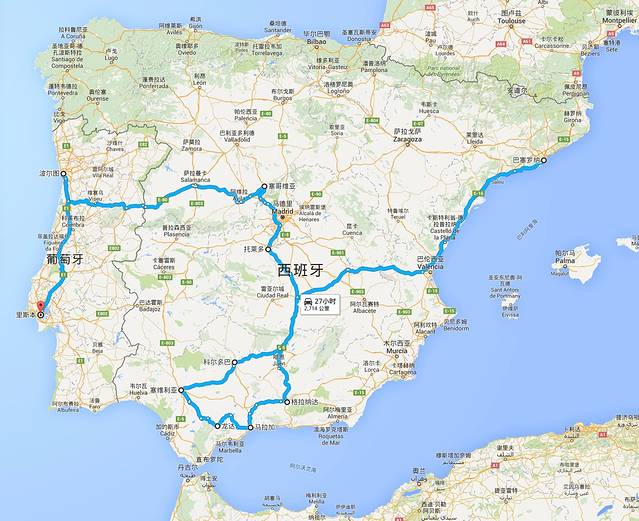 西班牙的行程并不难做,基本上就是巴塞罗那、马德里、加上西班牙南部的安达鲁西亚地区,无外乎就是什么交通工具的问题了。本来想的是全程租车自驾巴塞罗那进马德里出,但是其中两个没有这么长的假期,最多只有15天,她们两个舍弃葡萄牙。又觉得从巴塞开到格拉纳达,要八个小时,基本上就是开一天车了,出门在外时间比什么都宝贵,于是决定,从巴塞飞格拉纳达,从格拉纳达租车到马德里,她们两个从马德里飞北京,我跟另外一个马德里飞波尔图,波尔图坐火车去里斯本,从里斯本飞北京。