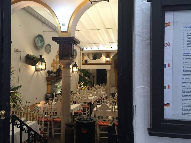 停好车,提着随身行李,走了大概十五分钟的样子,来到酒店,才知道刚才的决定是多么光荣正确伟大呀。酒店在一个非常窄的小巷子里,离科尔多瓦清真寺走路五分钟,可以进车,却没地方停车,但是看着周边那窄窄的巷子真的不知道车从哪里开进来。当初订这个酒店的时候,也就是看中了它在老城里,可以walk。这里再说一下我这次订酒店的宗旨,吸取上次欧洲行的教训,因为有些酒店订的远,不在老城区,所以错过了很多,也没体会到小城镇热闹的气氛,比如阿维尼翁戏剧节。所以,这次总结经验,不管好不好停车,不管停车收不收费,一定要住在老城中,无论吃喝玩乐逛都方便,给自己的行动最大的自由。尤其是当你跟你的小伙伴志不同道不合的时候,这点就更关键了,因为不需要动车,所以就没必要必须一起行动。