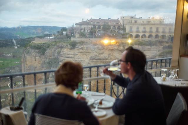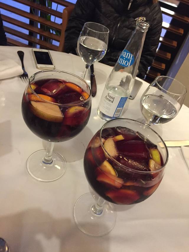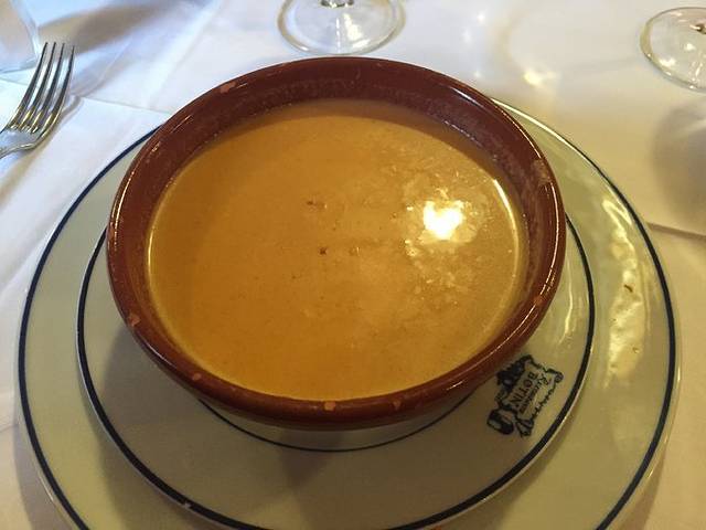 坐我对面的帅哥,也是一个人。我点了套餐,好像是35欧,一份西班牙冷汤、一份烤乳猪、一分冰淇淋,还有一小瓶酒。这次,都快离开西班牙了,才喝到这个西班牙冷汤,味道真心不错,但是,大早晨空腹直接一碗冰凉的灌下去,可想而知是什么感觉了,整个下午,胃都一抽一抽的疼。