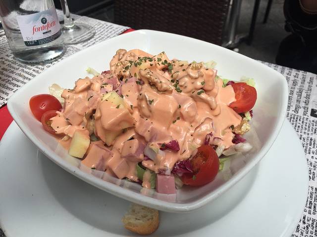 餐厅就在商业广场的一个把角,上面写着源于1782年,在欧洲,我真信。菜是那个年轻的服务生帮忙推荐的,出乎意料的好。