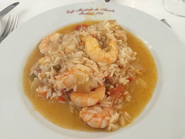 退了房,决定再上街逛逛,但是,真的就没心思逛了,只在一家买了葡萄牙的毛毯,说实话,真心好,也不贵,我一下子买了三块,针别姐买了两块。反正能带两件行李呢,不能浪费了。然后,针别姐开始不安,张罗着要去机场,我说提前三个小时就行了,针别姐说,必须提前四个小时,我也真醉了。好吧,找地方吃饭,然后去机场吧。于是,又决定去商业广场的那家两百年老店去吃,我们一进去,服务生居然还认识我们,并又帮我们推荐了菜,那个是葡萄牙海鲜饭真是惊艳。葡萄牙海鲜饭跟西班牙的区别还是很大的,说白了应该是海鲜粥。我不喜欢西班牙海鲜饭是因为不喜欢夹生饭,但是,葡萄牙海鲜饭因为是粥,所以不夹生,马上就喜欢上了
