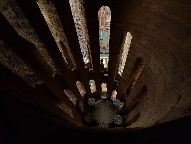 巴塞罗那我去年7月份来过之后,圣家堂是我所有去过的景点唯一想再来一次的地方,上次选择了受难面,这次选择的是诞生立面。时间紧迫先登塔,诞生立面在一进大门的右手,并不难找,但是到那我们悲催的发现,居然身上都没有硬币,存包需要一元硬币。没办法我只能去shop换钱,买了一支笔,把钱破开,这支笔我带了一路,到家才悲催的发现居然是坏的,无语了,7欧元的笔,估计也是made in 义乌吧。最变态的是,买完东西居然只能从出口出,直接就出到了圣家堂外面,当我再试图进去的时候,被告知,门票用过,不能再进去了。不会吧?我进不进去无所谓,大家都等着我呢,于是又返回商店,跟那个看门的说了半天,又拿出我刚刚买完东西的收条,才终于又让我进去了。据说诞生面是高迪自己设计制造的,而受难面是后人根据高迪的图纸建造的,诞生面跟受难里面相比,受难面更加棱角分明,而诞生面比受难面旧,更圆润光滑,其实塔上没什么可看的,楼梯狭窄陡峭,看也是看外面的风景吧。
