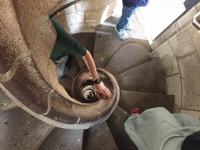 大家排队下楼的时候,不知道为什么停了下来,等了至少有五分钟。我发现前面的人为了拍一张没有人的螺旋楼梯,站在那里不走。我终于愤怒了,我在上面看见她一举相机,我就把手伸出去,做出胜利当然更是二的手势,你这么不知道尊重人,我也一定不会让你得逞。他没办法,只得放弃了。我跟懂事妹说,她一定是个亚洲人,不信一会儿看。