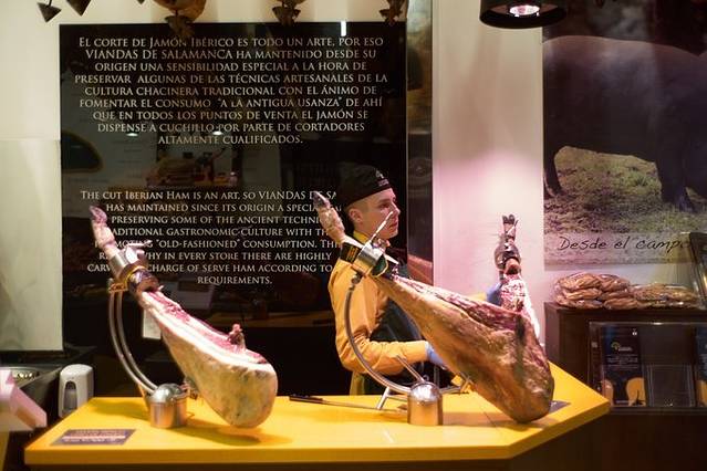把懂事妹他们送到爱马仕,就分兵行动了。萨拉曼卡区周围几条街都是购物区,不仅仅有奢侈品,更多的是西班牙本土的品牌的精品店,光看橱窗,就知道东西有多精致了。这才知道,马德里购物比巴塞罗那好多了,唉,可惜没时间了,但是我还是买了比我的脸还柔软的皮手套、买了箱子、买了好几双西班牙本土牌子的我最喜欢的中性三接头皮鞋,没时间了,没地方装了,要么还会再买几双。看来,就是为了购物马德里也必须再来一次。然后,我就纠结着,是继续急急忙忙地逛呢,还是去吃烤乳猪呢?最后,还是那个吃货的我战胜了那个购物狂的我。当然,逛街应该是件悠闲的事,如果这么急急忙忙的带着任务的逛,也不是我喜欢的,所以果断放弃。