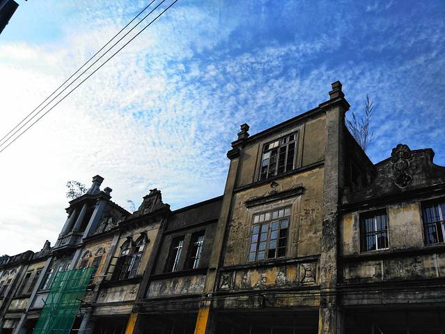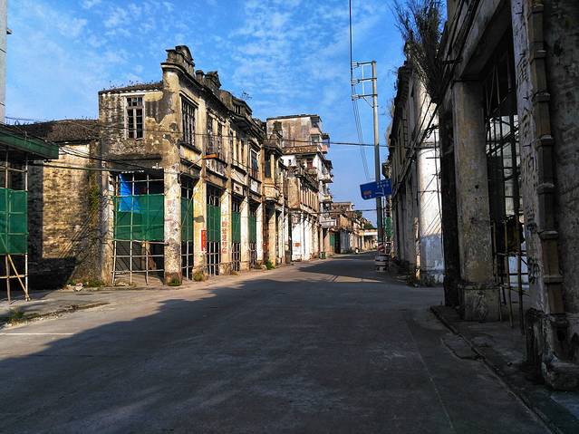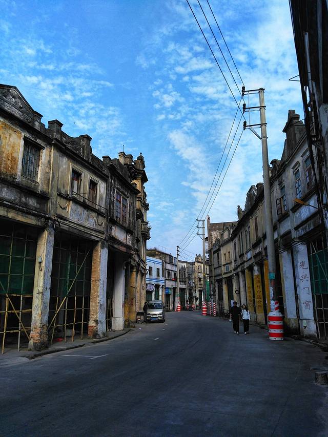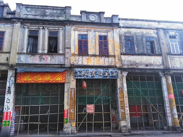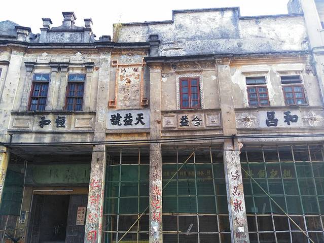 一排排古老的骑楼建筑,墙上斑驳的店铺号,能感受到曾经这里是繁华之地