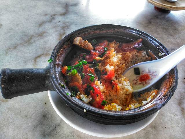 十一点多,肚子饿了。吃了柴火煲仔饭,味道还行,25块,感觉价钱偏贵咯。不过阿姨和叔叔还挺热情的。