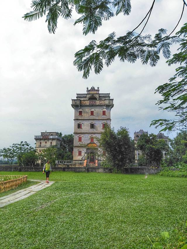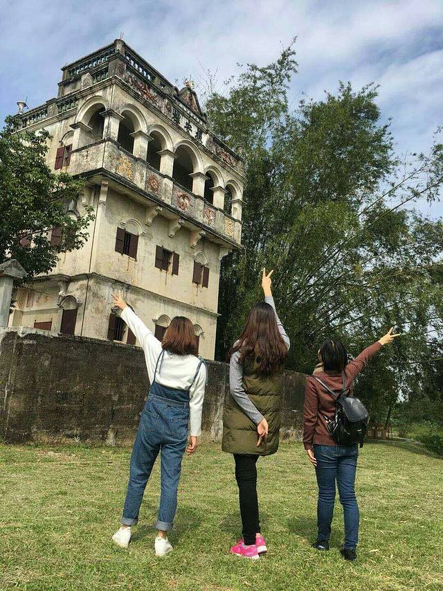 11.26日早上7:45小伙伴们一大早兴高采烈深圳出发,十一点左右到达开平碉楼,历时三个多小时。前一天晚上本来约好去虎门炮台,临时改变行程去的开平。九点多在路上的时候,我们还沉浸着去虎门的幻想中,直到南沙两个字赤裸裸的出现在眼前,我和小馒头惊讶起来:我们是不是走错路了。原来小伙伴临时改目的地为开平碉楼了。哈哈哈,原来我们是要去开平呀,啊哈哈哈我们被卖猪仔啦(黄又黄和鸭脖哥不要生气哦)。就这样,我们开始了一天的开平碉楼之旅,狠狠的体验了一把“碉民”生活。