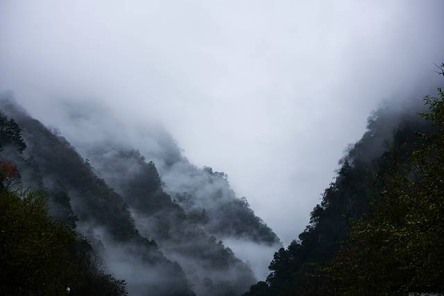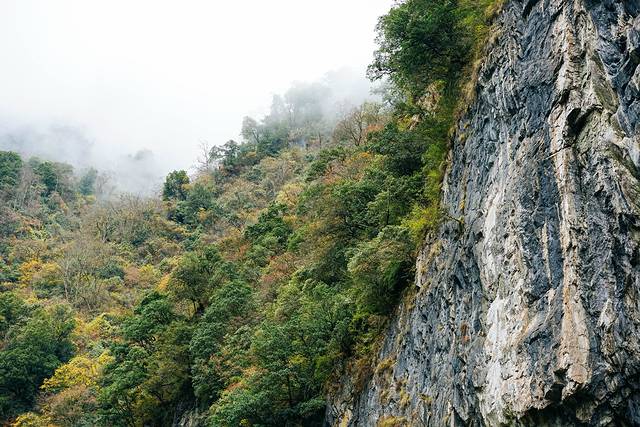 旅行中总会出现大大小小的意外,深秋时节我们在这里遇见的红叶彩林与湛蓝河水的交织,七彩岩石和云雾袅袅的群山,美景如诗如画,但路很窄,多石头泥泞,加上自己没有充足的准备,2天的时间感觉饥寒交迫。峡谷因为比较冷门,所以游人不多,适合徒步,露营,摄影。