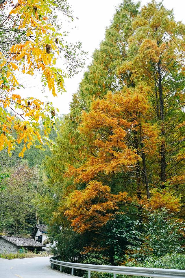 跟着导航,自驾穿梭在盘山公路上,风景也是极好的,因为树木的品种不一,可以看见绿色的,红色的,橙色的树木,居民家的柿子树上结的红彤彤的柿子,满满的幸福感,路边摆摊的当地居民也摆摊卖自家的柿子,有大有小都3元钱一斤,非常香甜,喜欢吃柿子的朋友一定别错过了。看到好看的风景,就忍不住想要停下来,用相机记录这些美好的画面。