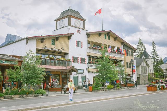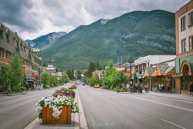 坐落在班芙公园中心的班芙小镇是这次落基山脉自5日自驾行的第一站。从卡尔加里机场出发,开到班芙小镇只要1个半小时就够了。沿着加拿大1号公路,跟着Banff的路牌走,从公路右边下来后,左转就上了班芙大道。班芙大道是小镇最主要的一条马路,宽敞的道路两边是各式各样的商店和餐馆。