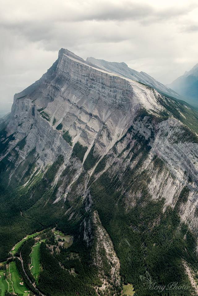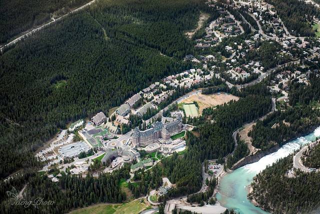 班芙小镇附近最受欢迎的旅游项目之一就是坐琉璜山的缆山,在山顶的观景台能把小镇和周围的高山一起收入眼中。但是作为资深直升机游览观光客(一共在4个不同地方坐过直升机),我深知直升机游览的好处。1.能够拍到鸟瞰角度的照片。2.能够看到更多地面上看不到的风光。3.坐直升机感觉超酷的。如果大家预算充足,还是可以考虑坐一次的。说不定就像我一样坐上瘾了呢