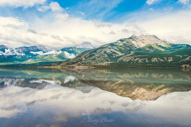 这座湖最吸引人的就是我在其它的湖早起晚归都没有遇上的清晰倒影。远方的三座大山和山间飘荡的云彩都看得一清二楚。