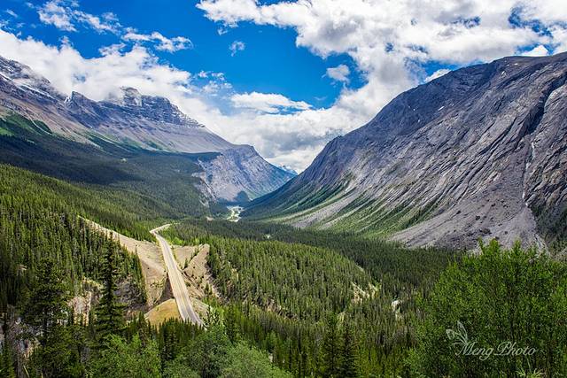 拍的时候不知道名字,回去以后查了才发现这加拿大人取地名真实诚,这个发夹弯就叫大转弯(Big Bend)。名字土归土,风景是一流。看着刚开过的公路在群山和郁郁葱葱的树林中蜿蜒起伏,远方的蓝天丝毫看不出下过雨的痕迹。