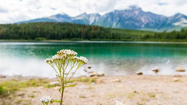 找了一朵湖边的白花当作前景,拍下了这次出行我最喜欢的一张照片。