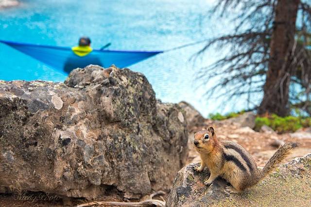 观景台上都是个人,走到观景台下层时突然发现树林里有一座吊床。好奇地上前攀谈后才了解到这个叫作杰夫的男孩子,喜欢带着他的吊床到处拍照,这个自拍风格真得很有创意呢。