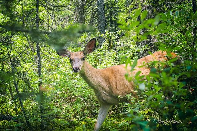 刚踏上小径没多久,就听到树林里传来轻微的声响。走进去一看,发现一只正在吃叶子的长耳鹿。大概是被激动地我吓到了,小鹿看了我一眼后就悠悠地转身离开了。但是这意想不到的短暂的接触还是让我心动不已。