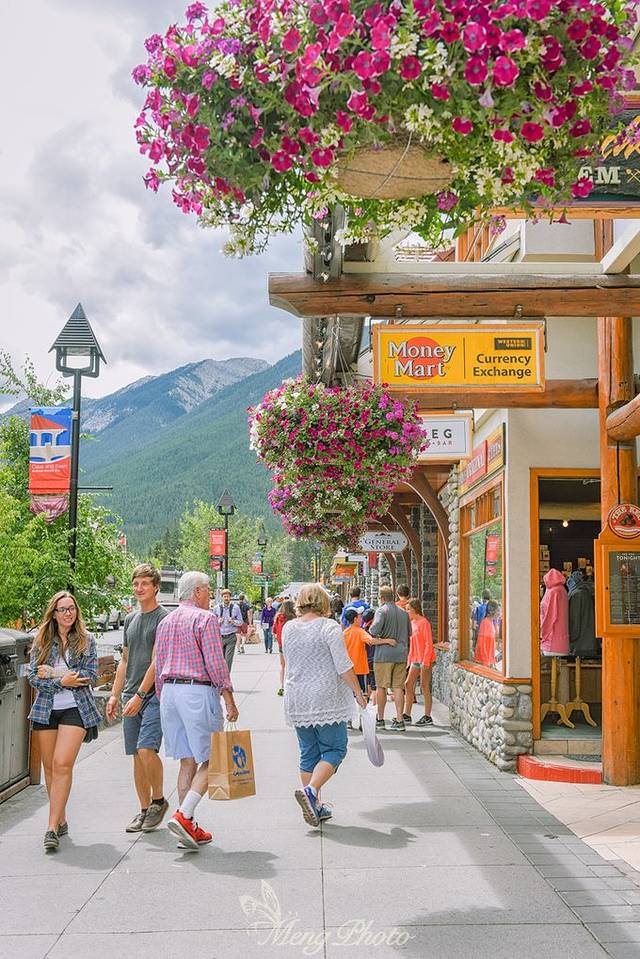 在班芙小镇,你可以加入勿忙的游人逛一逛纪念品店,也可以沿着小路走到小镇边缘,欣赏碧绿色的弓河水缓缓流动。