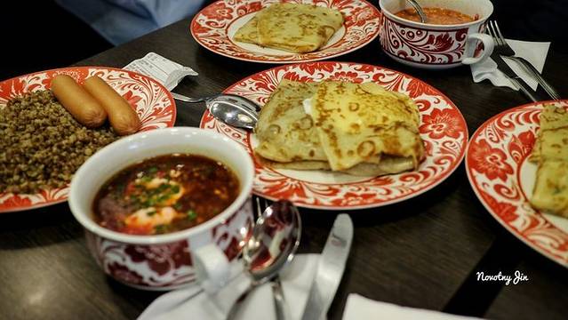 俄罗斯美食里面的主食除了黑面包之外,就是上面的荞麦米。不管是鸡胸肉,猪肉,还是牛肉,旁边都会搭配上满满的荞麦。西餐里面的米饭类食物一般都会夹生,所以会有很多国人吃不惯。荞麦米就没有那么强的夹生感,但是基本上没有任何味道纯粹充当主食...而当我看到隔壁桌的人加了3大汤匙的酸奶油,瞬间明白了俄餐的奥义...