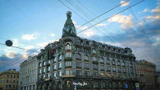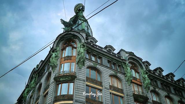 在涅瓦大街上超级炸眼的一栋建筑,外形实在是美到无法形容。整栋大厦其实叫做 「歌手大楼」,一层二层是图书商店,二层还有一个很fancy的咖啡厅,价格比较高,一个牛角包+一杯咖啡就要上千卢布,但是坐在咖啡厅对面的view就是喀山大教堂,很适合下午茶。