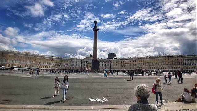 眼前的这只是 「 亚历山大纪念柱 」,为1812年亚历山大一世战胜拿破仑大帝而建立的。据说这个柱子有600吨,完全没有任何支撑点,全凭自己的重力坚挺了这么多年...犹如一场狂风暴雨里吹不走的300斤孩子