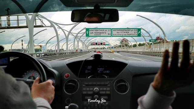 讲到这件事就来气!这是我们在俄罗斯这8天以来唯一被坑的一次。因为圣彼得堡从机场到市中心没有公共交通直达,所以我们换完电话卡准备出门,我和妈妈打算去外面叫taxi。这时有两个人站在门口,打扮的就是正经taxi driver的装扮,最重要的是他们英语很好,声称是某某家taxi公司,脖子上挂着taxi的牌子,然后我们就觉得还蛮靠谱儿(可能是飞机上睡多了当时脑子根本没有在转),就跟着他出去了。后来他把我们带到了停车场,看到他的车明摆着就是一辆黑车,我一直在问他多少钱,他就说是by meters(打表记),所以我就还比较放心,而且一家人很多箱子就懒得再回去了,于是就坐上了这条贼船。司机胖胖憨厚的,还跟我们讲解很多俄罗斯的民俗,路过很多标志性建筑的时候还会热情地介绍。