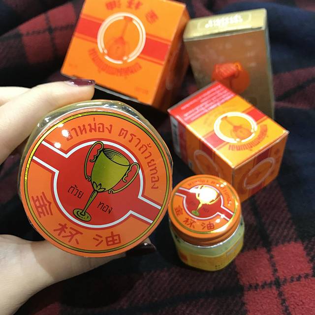 金杯油是全家可以使用的产品,我真喜欢这款药膏的味道 效果也特别好。我上次去泰国被蚊子咬了好多,就买了这个金杯油来使用 涂了一会儿就不痒了!去游乐园的时候,也用了这个药膏来缓解头晕。它的功效特别多~ 价格也超便宜,这是“价廉物美”的产品! 。