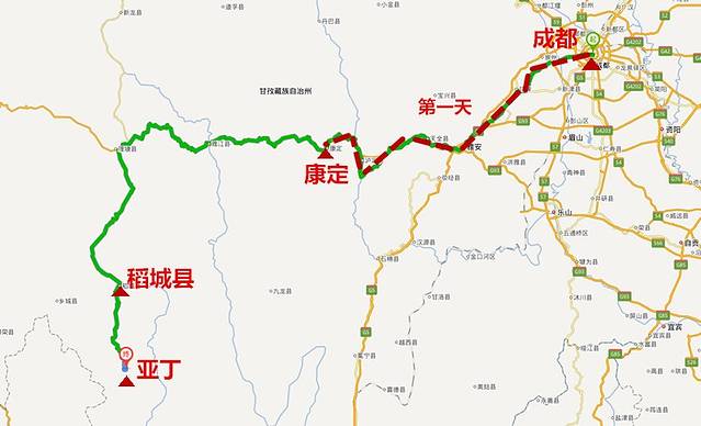 从成都开往稻城的客车要运行两天的时间,所走的这条公路也就是著名的川藏线318。