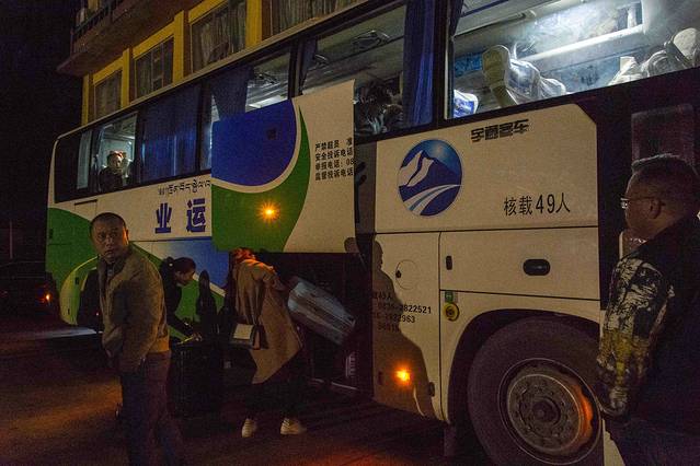 第一天,客车在康定中途休息,乘客需要自己找地方住下。第二天再继续乘车。