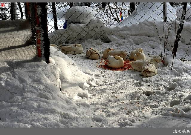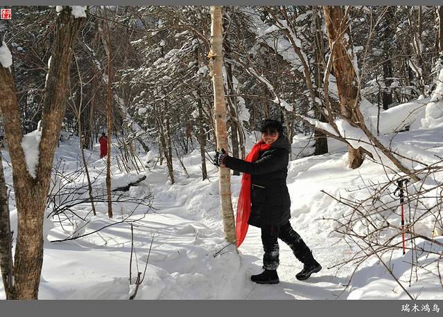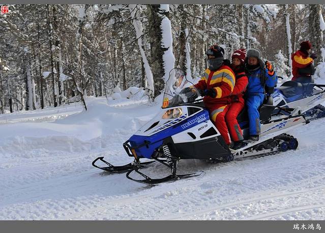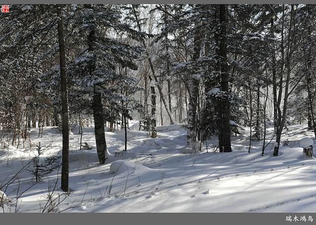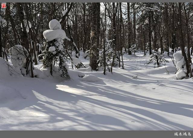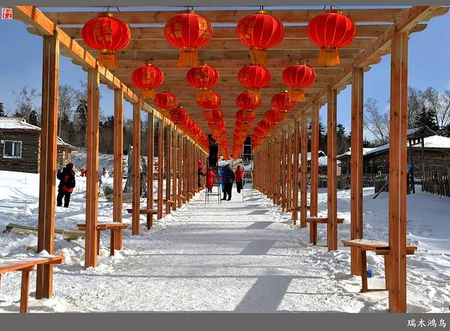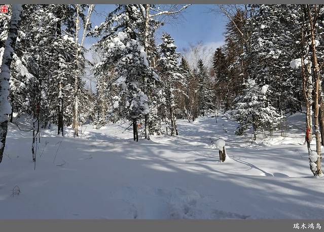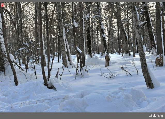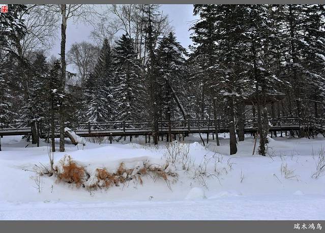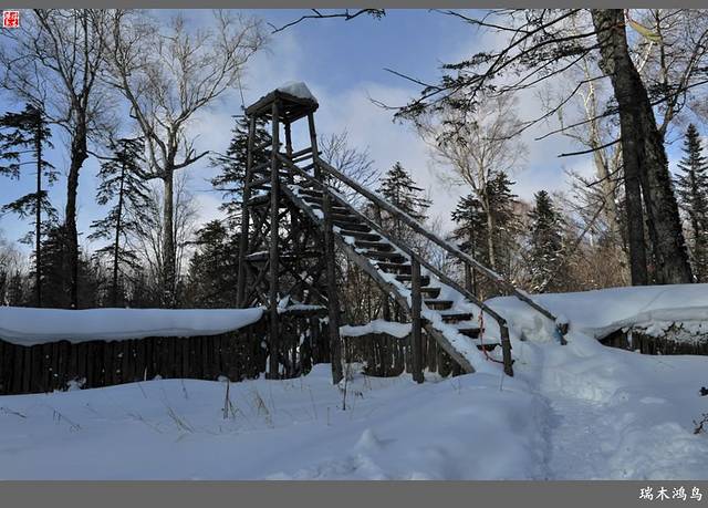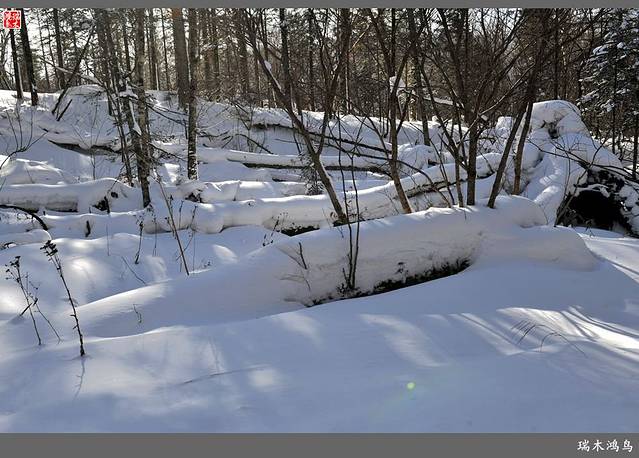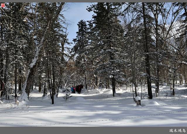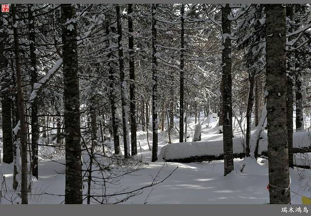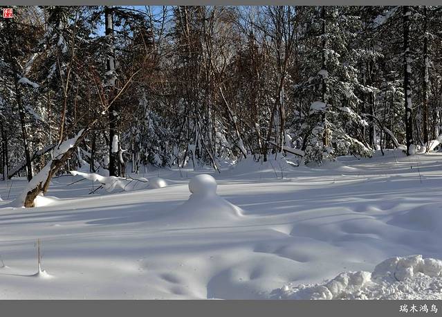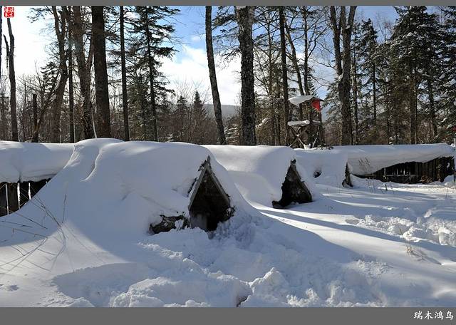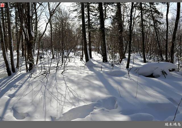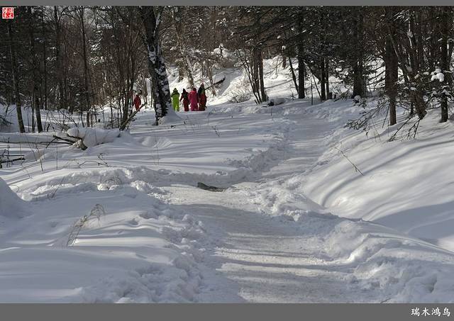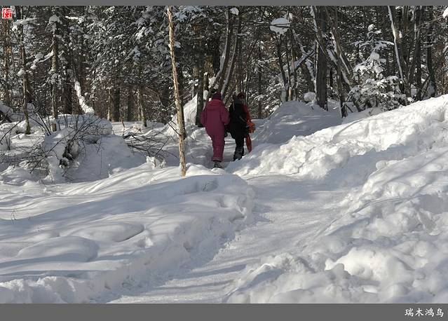 次日清晨,我们换上厚厚的冬装,登上大巴车驱车前往雪乡,除了我们的团队,其他团队几乎都是南方客,到处都是湘音、川调、你侬我侬的上海本帮味道,还有几乎从未见到过雪景的广东人,他们都租赁了亚布力滑雪场的滑雪服以保暖,貌似冰雪健儿,茫茫雪原中五颜六色的滑雪服也是一道亮丽的风景。沿途没有了高速,车在茫茫的张广财岭盘山道上爬行,隆冬季节这里几乎天天飘着雪花,飞雪迎宾,好一派北国风光,途中经过大雪谷景区,进行了一把穿越林海雪原的昂贵游戏,与梅花鹿、狍子、山猪、雪鸡零距离接触,感受了大东北冰天雪地的冻人情怀、威虎山的山寨豪情和雪地摩托的疯狂。穿林海,跨雪原,气冲霄汉,瑞雪初霁,山色如黛,山高林密,小径曲折,人迹罕至处竟是一条未上冻的小河淙淙流淌,两岸已结了冰层,冰层之上覆盖着自入冬以来的每一场降雪,河岸边的大石头,就像是一朵朵盛放的雪蘑菇。玉龙飞舞遮天日,鳞甲散落满峰峦,雪深三尺,堆银铺玉,晶莹剔透,好一个冰雪世界。雪质极佳,雪大雪白且雪粘,随风雕琢,与物具形,宛如蘑菇挺秀、白猿献桃、怪蟒翻身、野马奔腾、海龟望月,不一而足,异状纷呈。更有奇者,房屋披挂“雪帘”,亦称“雪舌”,竟与地面大雪粘合。置身其间,如临童话世界,玩雪赏雪、登山摄影,心身俱爽,其乐融融。一路踏雪前行,踩在上面吱吱作响,像一曲美妙的乐章,伴随着我们一路欢歌笑语,缓缓地前行,一路的美景恍惚眼前,幻入梦幻冰雪的童话世界。