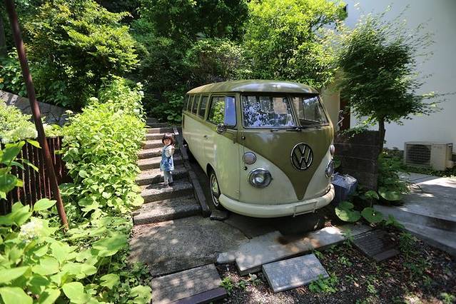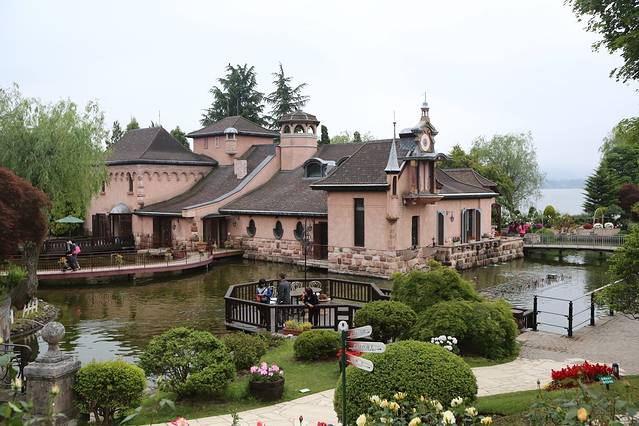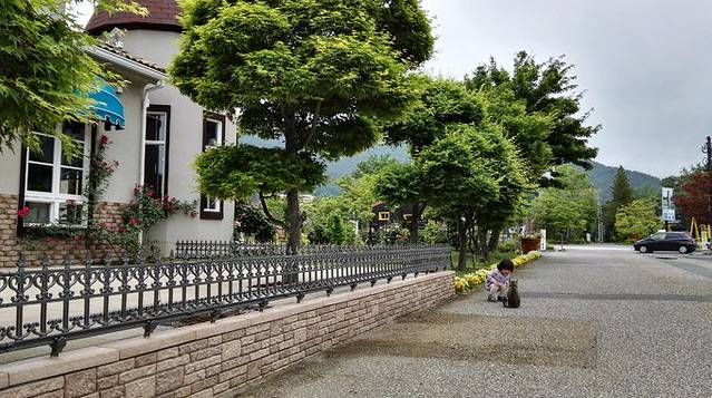 16:00-16:30 步行到八音盒之森,图中在河口湖木の花美术馆停留片刻,差点误以为是八音盒之森,优酱发现一只喵星人,逗留了10多分钟。