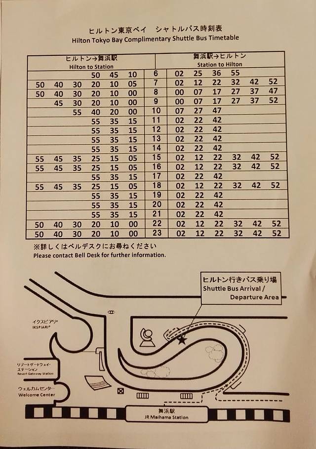 舞滨车站停车点:出舞滨车站大门后下一层楼梯,步行到马路对过,在天桥下面好几家酒店的巴士都停在那,hilton酒店巴士停车位在一个蓝色巴士后面(图片后补)