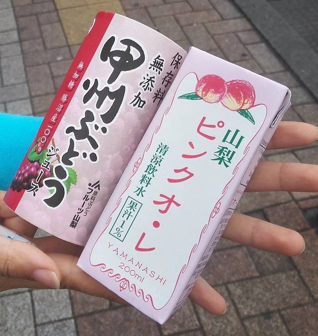 甲州的葡萄和山梨的白桃牛奶