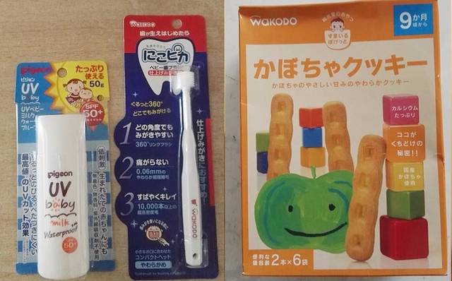顺便推荐下和光堂360度牙刷和饼干,牙刷刷毛很细很密,对于2岁多的小朋友能更高效的刷牙。饼干有很多口味,最大的优点是没有添加剂,口味都很清淡,强力推荐(优酱最爱吃的的南瓜味饼干条和菠菜味的米饼)。防晒霜目前只用过这一款,还可以吧就是比较难洗。