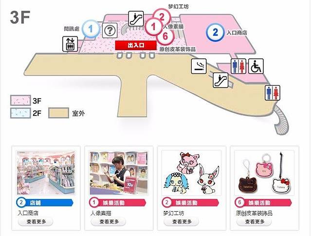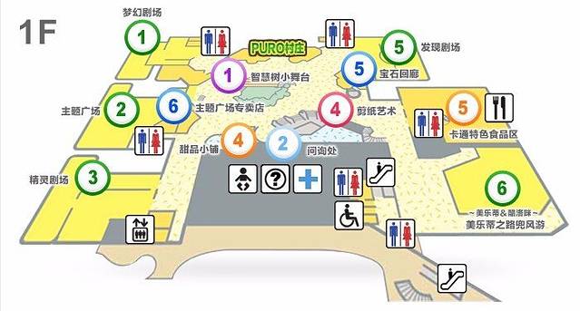 一层大厅:超市(可以解决每日的早餐:明治牛奶、酸奶、水果、饮料等)、迪士尼商品商店、面包房、儿童活动区。