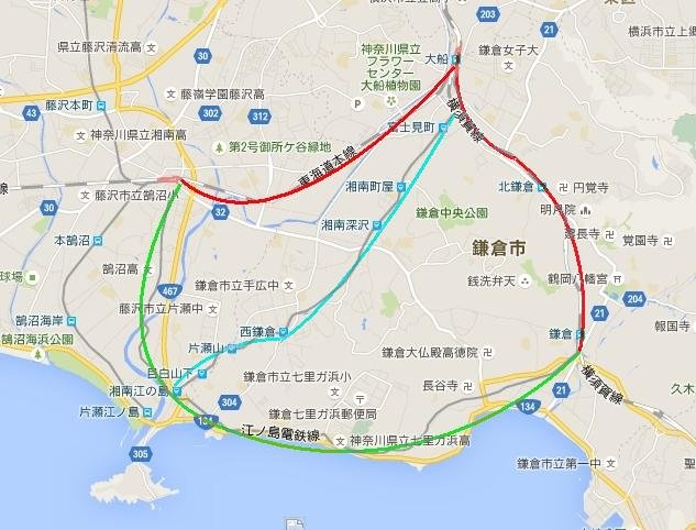 13:50-14:10 步行到江之电鎌仓站(在JR镰仓站后面,过一个地道就能看见),乘江之电(镰仓-镰仓高校前)