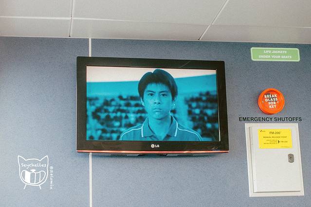 准点出发,船舱里居然还播放起了周星驰的《功夫足球》…
